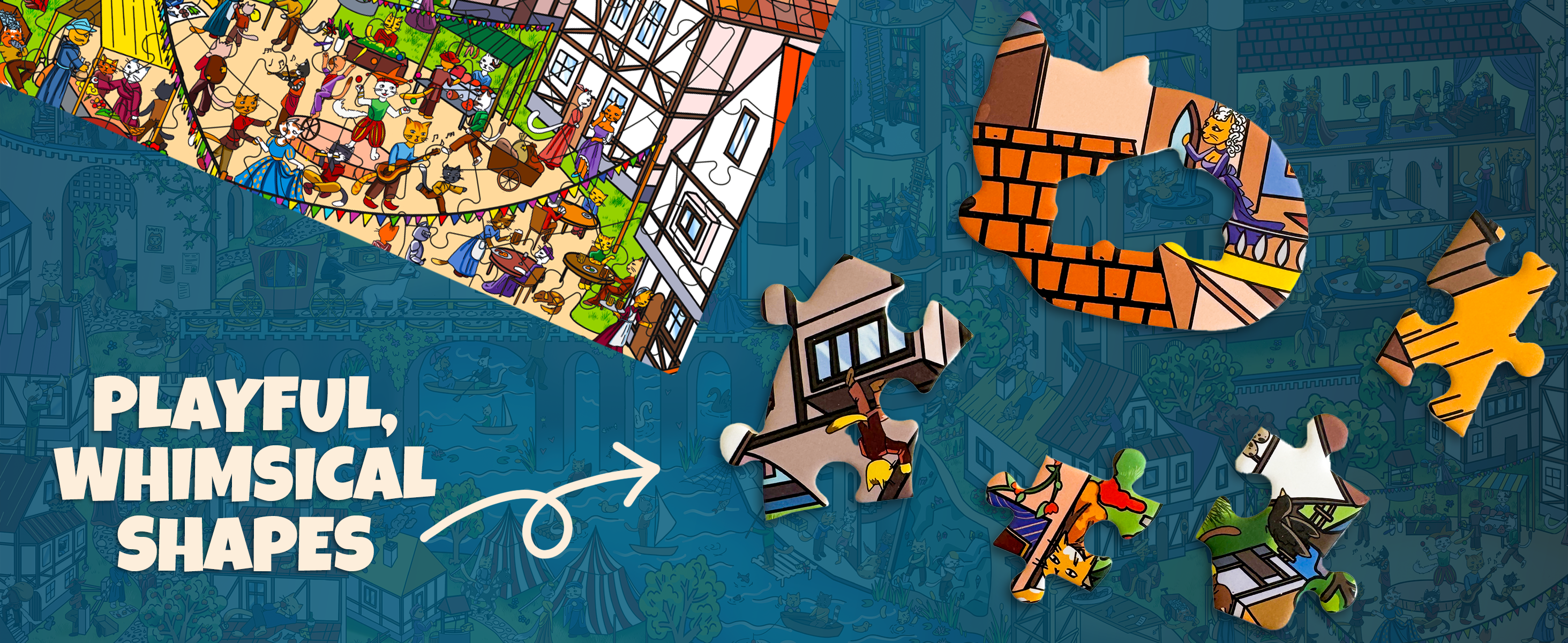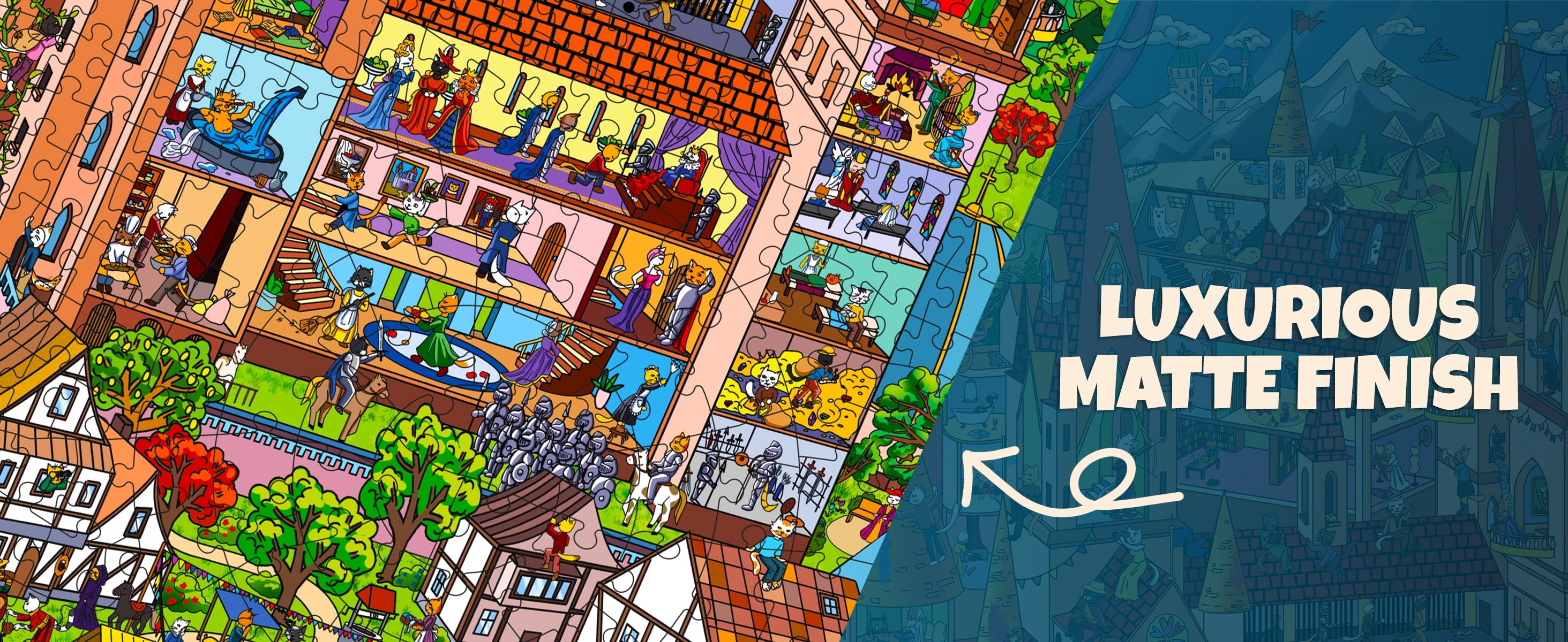 - Dive into a world of imagination with this 1000-piece Cat Kingdom Puzzle, where cats live as humans in a vibrant medieval kingdom.