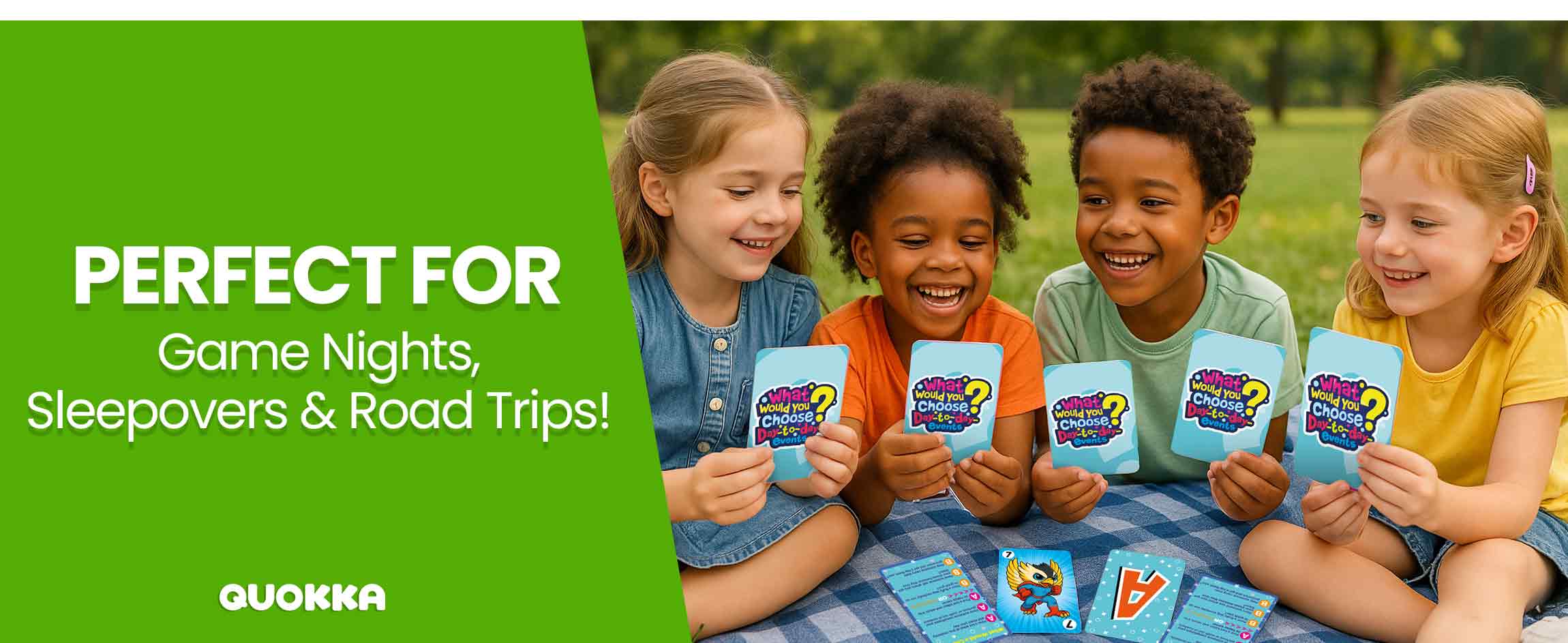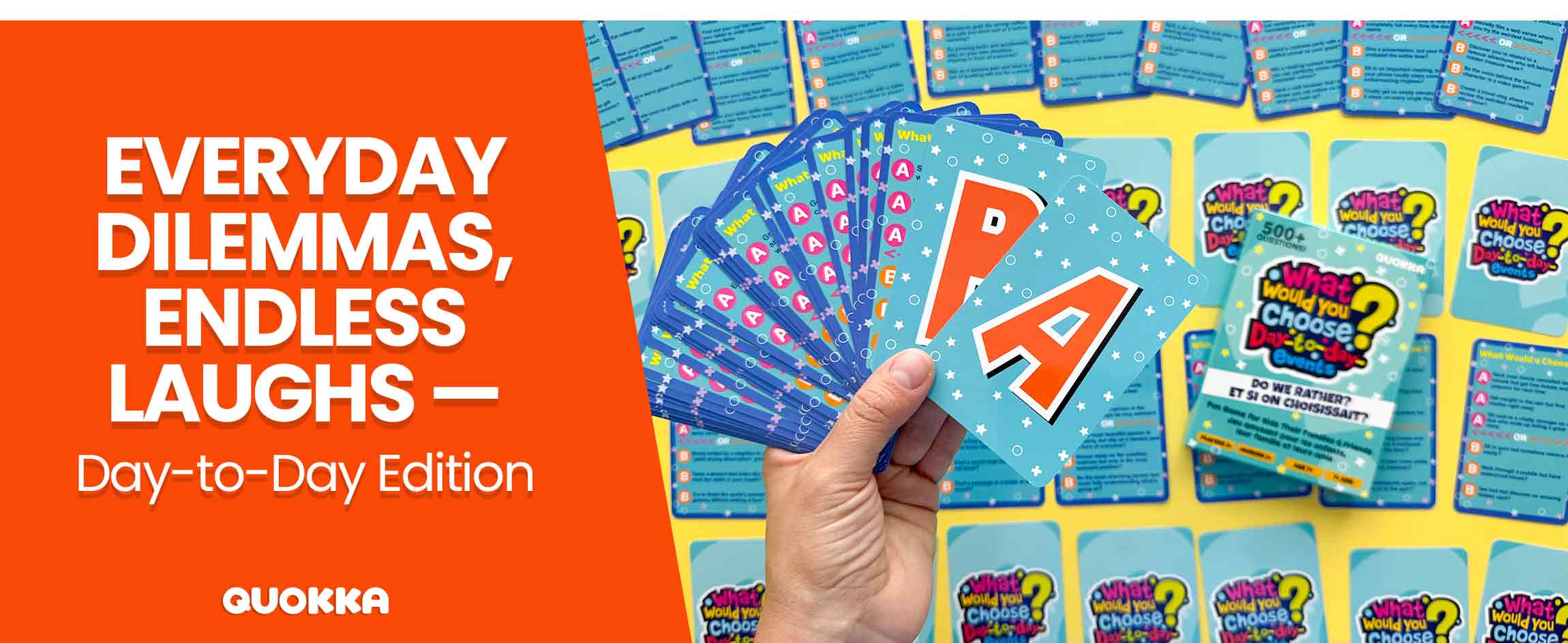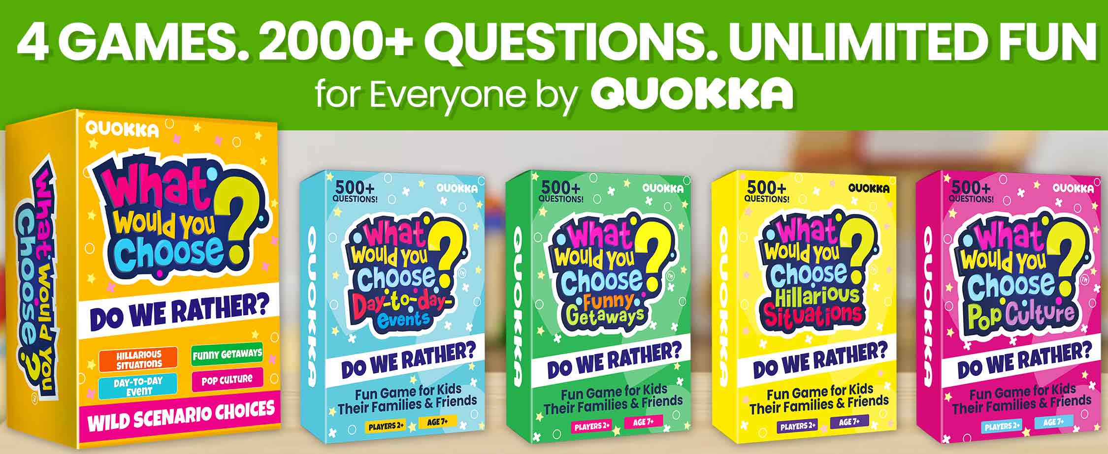 🎯 Featuring Day to Day Events, Hilarious Situations, Pop Culture, and Funny Getaways, this 4-in-1 set includes 2000+ hilarious questions that spark conversation, imagination, and nonstop giggles.