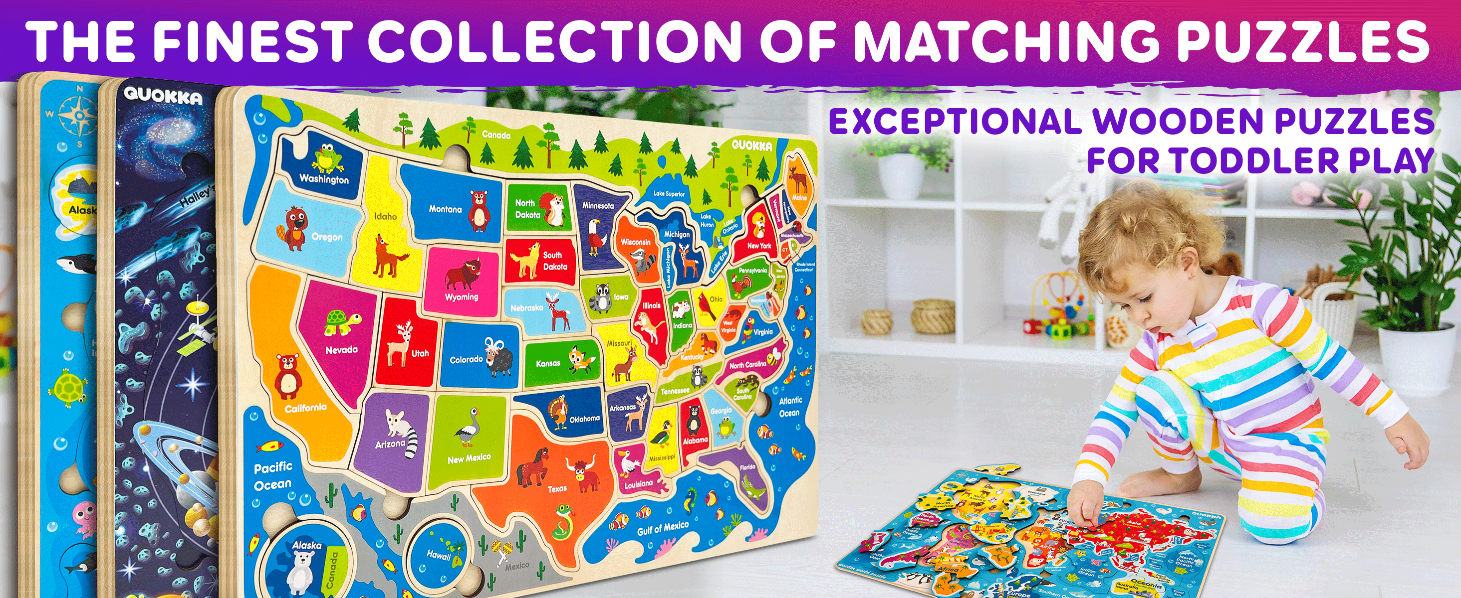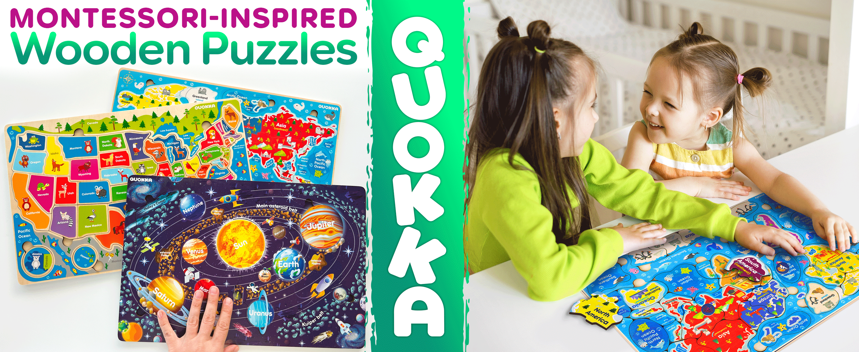 Discover our premium wooden matching puzzle set—USA, World Map, and Space! Engage in captivating learning adventures featuring iconic symbols, global exploration, and cosmic wonders. Crafted with quality wood, these puzzles inspire curiosity and education in one deluxe collection.