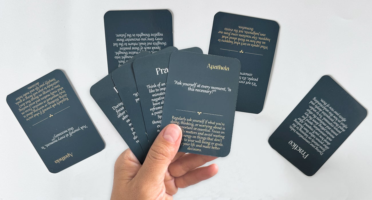 This mindfulness deck turns Stoic wisdom into action with quotes from Marcus Aurelius, clear explanations, and simple practices you can use right now.