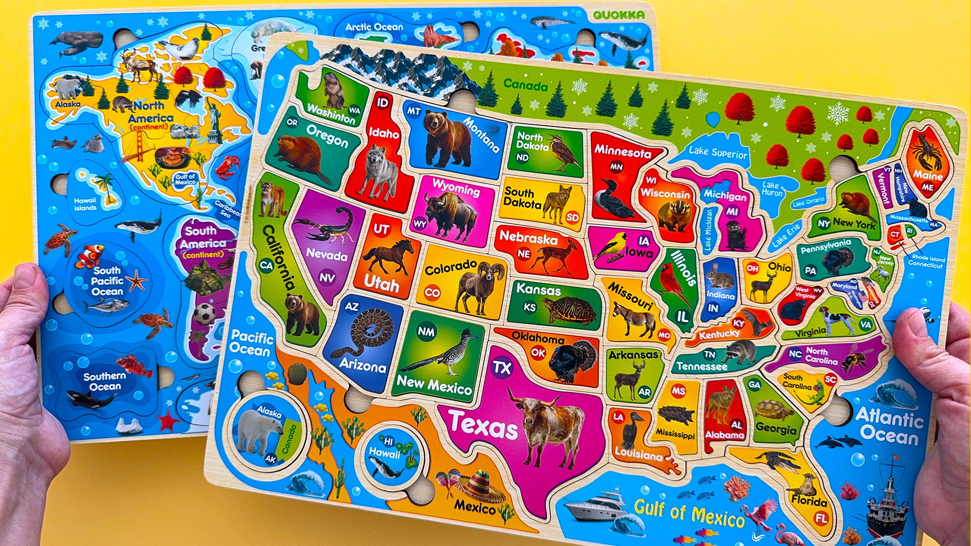 Wooden Puzzles for Kids - Realistic USA and World Map